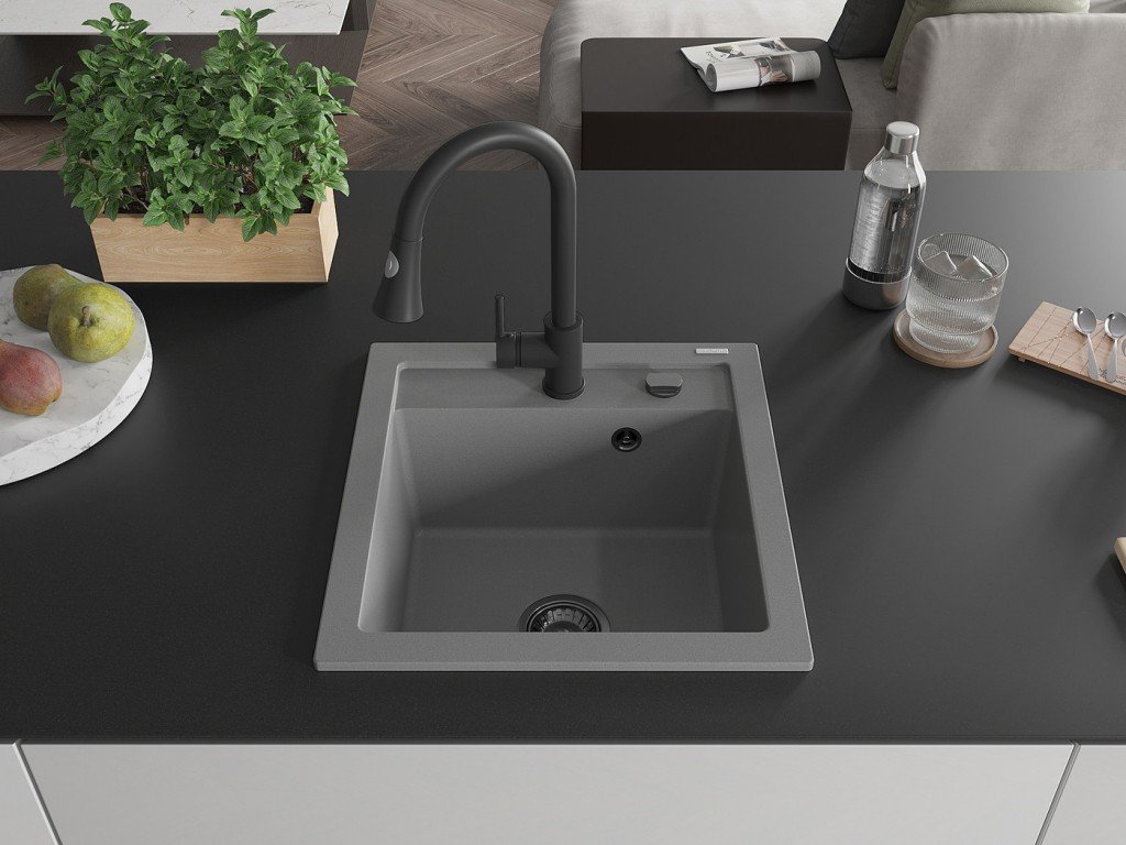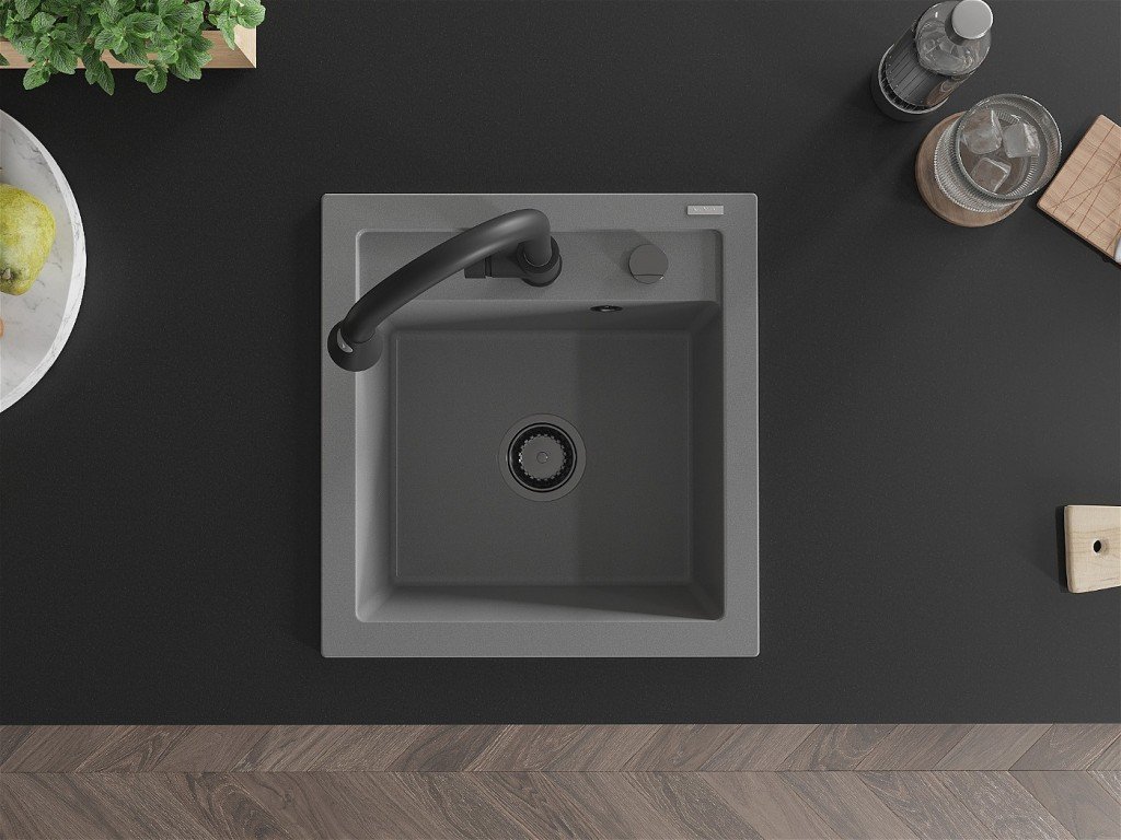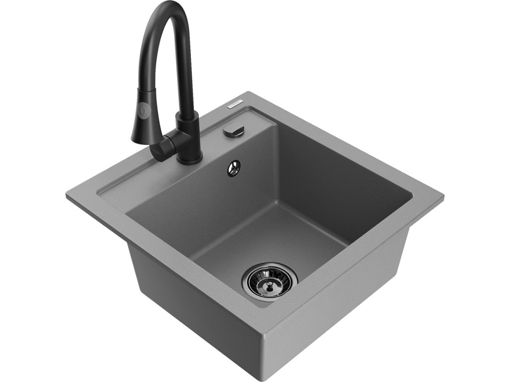 MEXEN/S - Vito granitový dřez 1-miska včetně baterie Elia, šedá 6503-71-670101-70-B