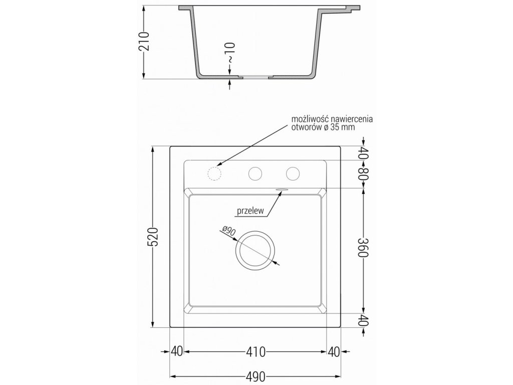 Průměr odtoku: ø90 mm