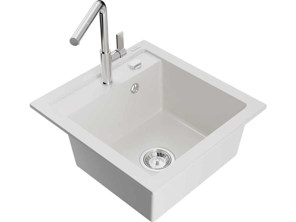 MEXEN/S - Vito granitový dřez 1-miska včetně baterie Flora, bílá 6503-20-670401-00