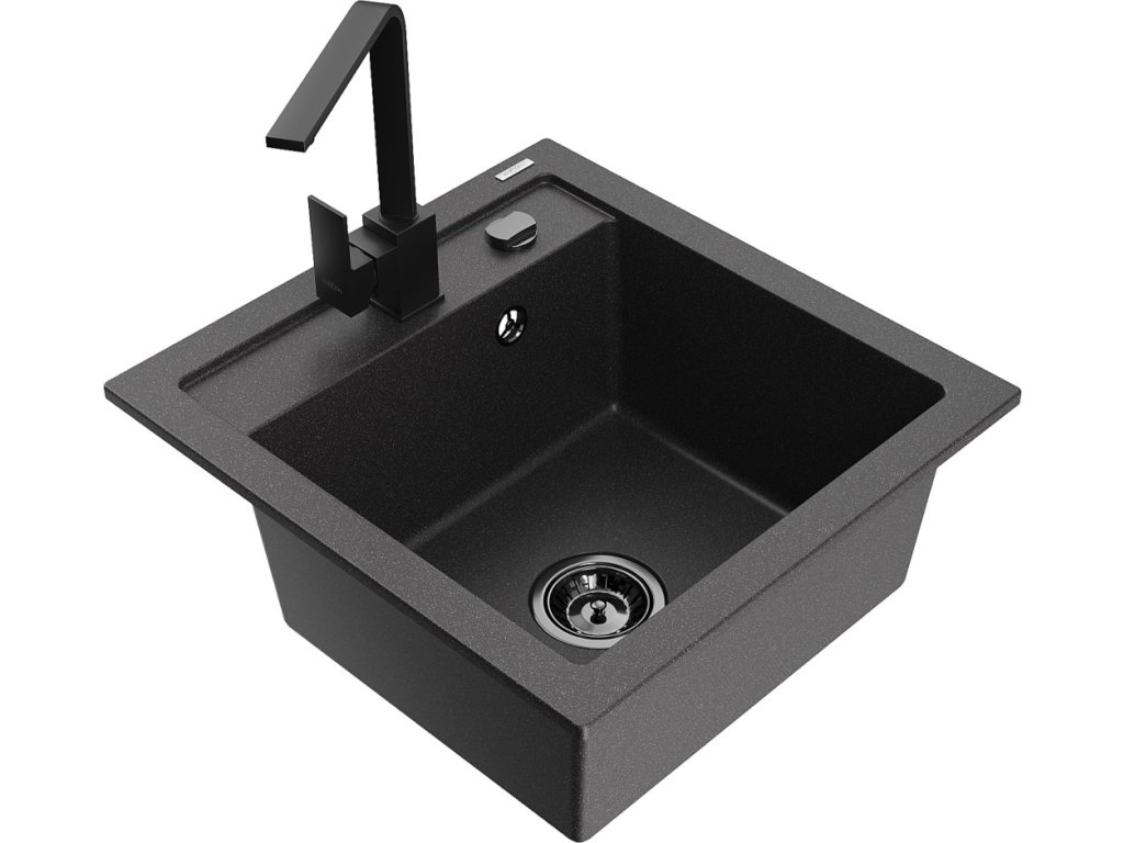 MEXEN/S - Vito granitový dřez 1-miska včetně baterie Rita, černá kropenatý 6503-76-670300-70-B