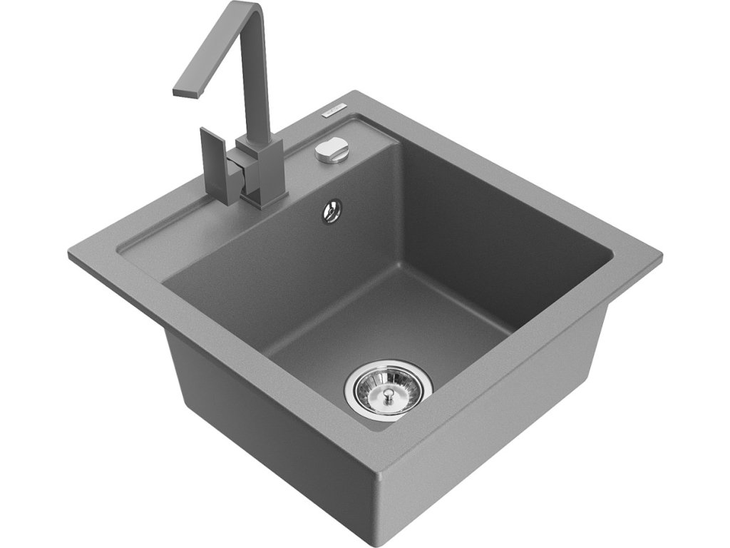 MEXEN/S - Vito granitový dřez 1-miska včetně baterie Rita, šedá 6503-71-670300-71