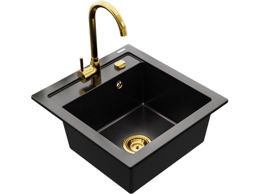 MEXEN/S - Vito granitový dřez 1-miska včetně baterie Telma, černá 6503-77-670200-50