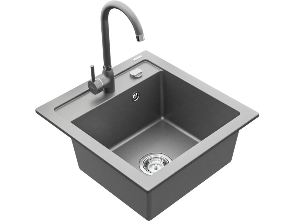 MEXEN/S - Vito granitový dřez 1-miska včetně baterie Telma, šedá 6503-71-670200-71