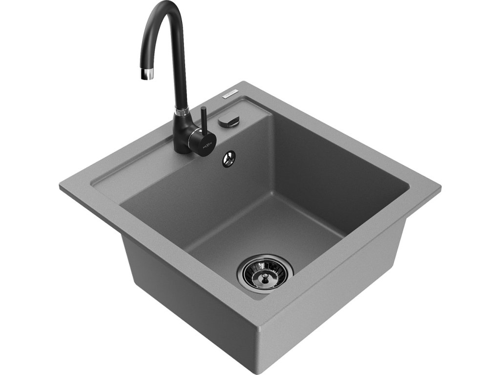 MEXEN/S - Vito granitový dřez včetně baterie Telma, šedá 6503-71-670200-70-B