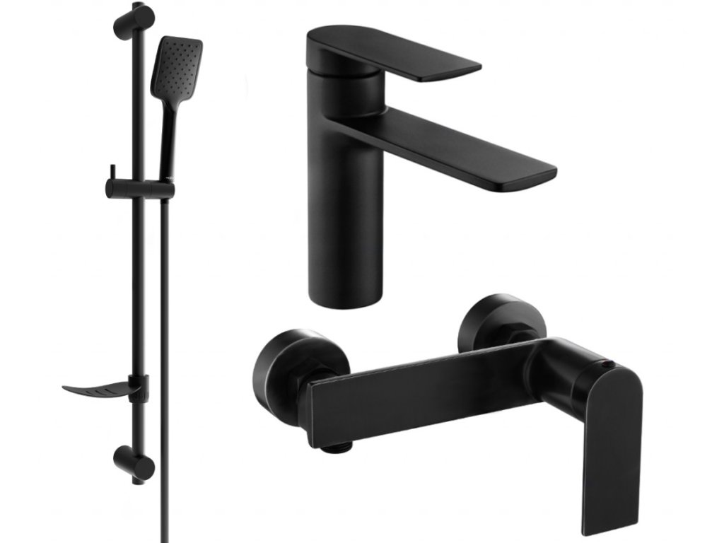 MEXEN/S - Zero SET umyvadlová + sprchová baterie s příslušenstvím DF62, černá 71104DF62-70