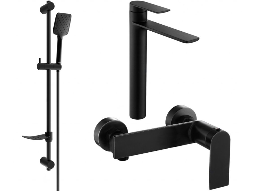 MEXEN/S - Zero SET umyvadlová + sprchová baterie s příslušenstvím DF62, černá 71114DF62-70