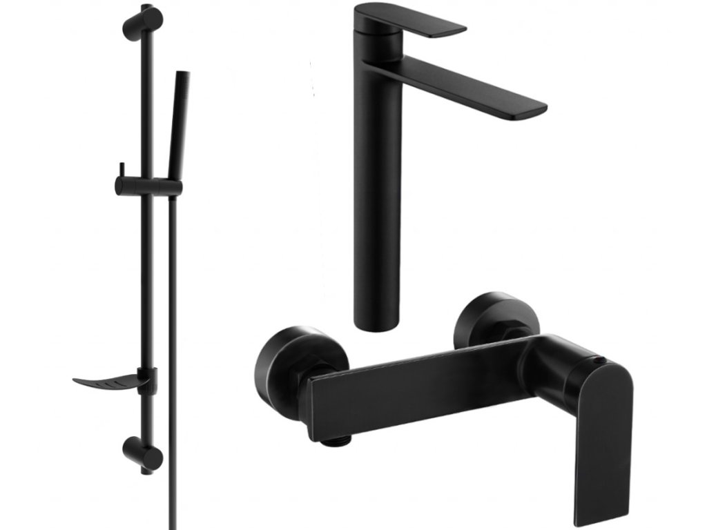 MEXEN/S - Zero SET umyvadlová + sprchová baterie s příslušenstvím DF70, černá 71114DF70-70