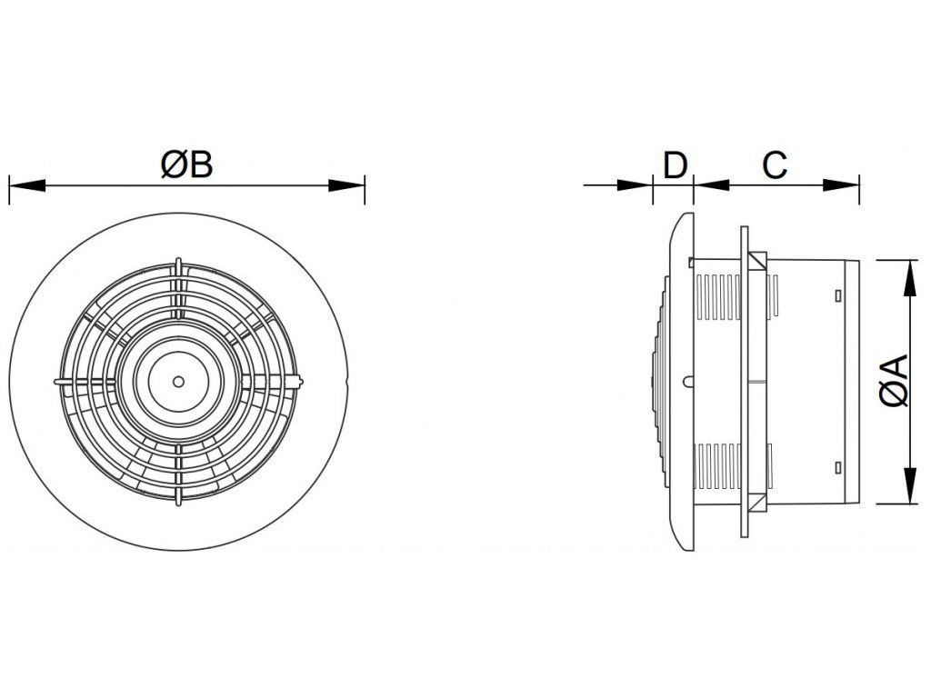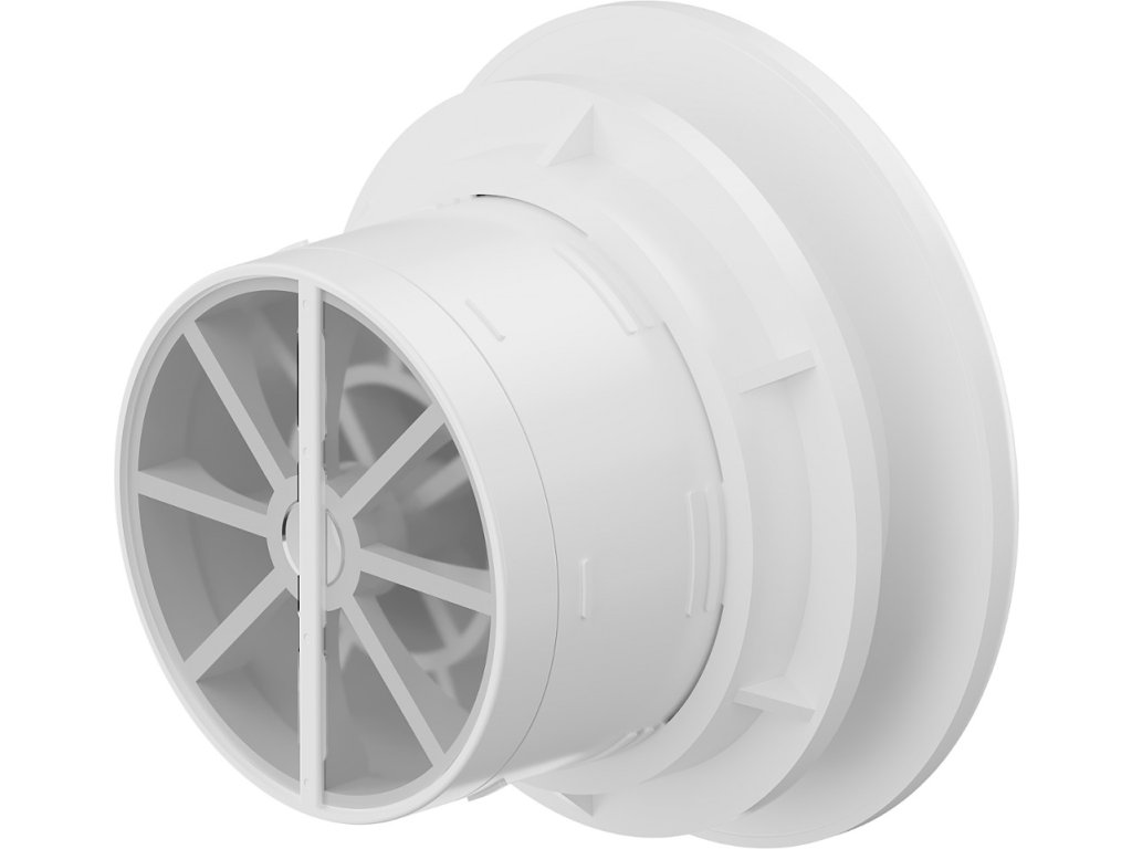 - Zpětná klapka, která zabraňuje proudění vzduchu zpět do místnosti z ventilačního potrubí