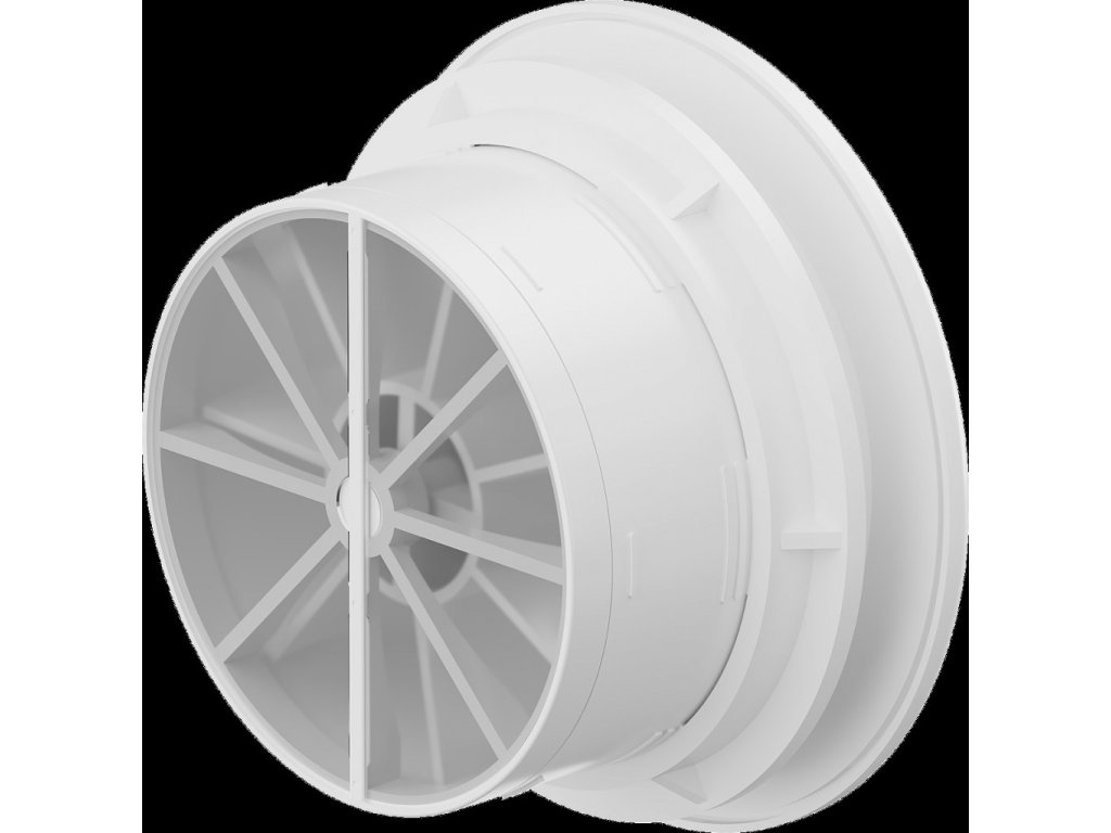 - Zpětná klapka, která zabraňuje proudění vzduchu zpět do místnosti z ventilačního potrubí