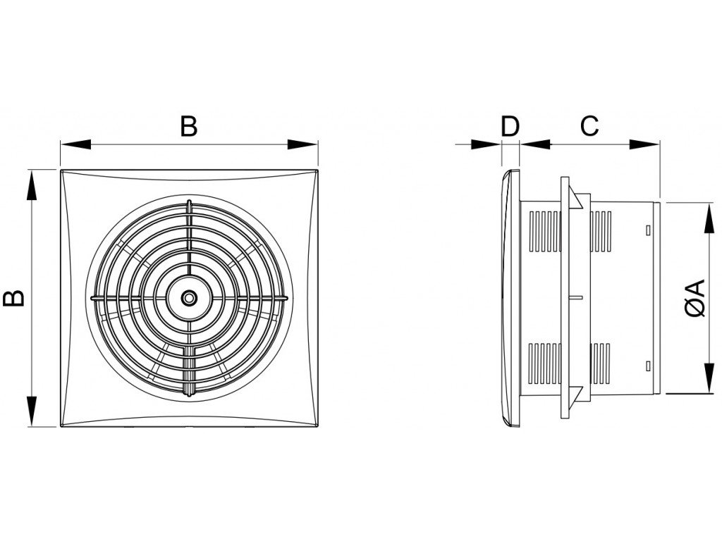 - Zpětná klapka, která zabraňuje proudění vzduchu zpět do místnosti z ventilačního potrubí