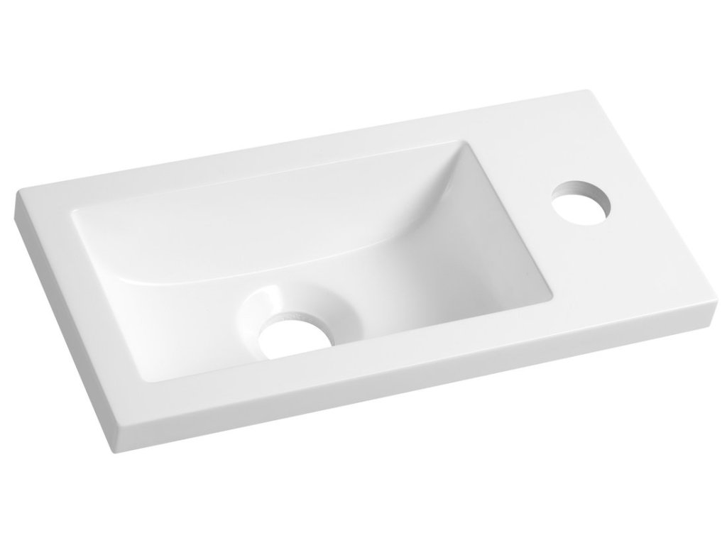 Nábytkové umývátko, liatý mramor, 37x18cm, biela