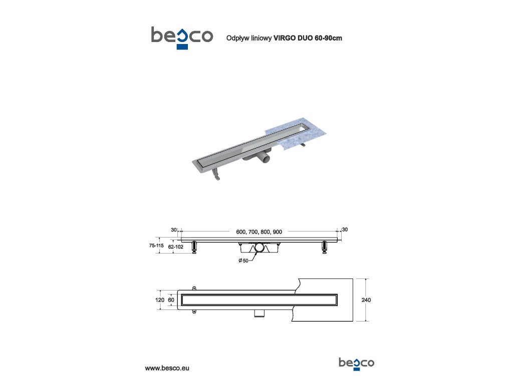 Odtokový žľab VIRGO DUO s roštom 2v1, 90 cm