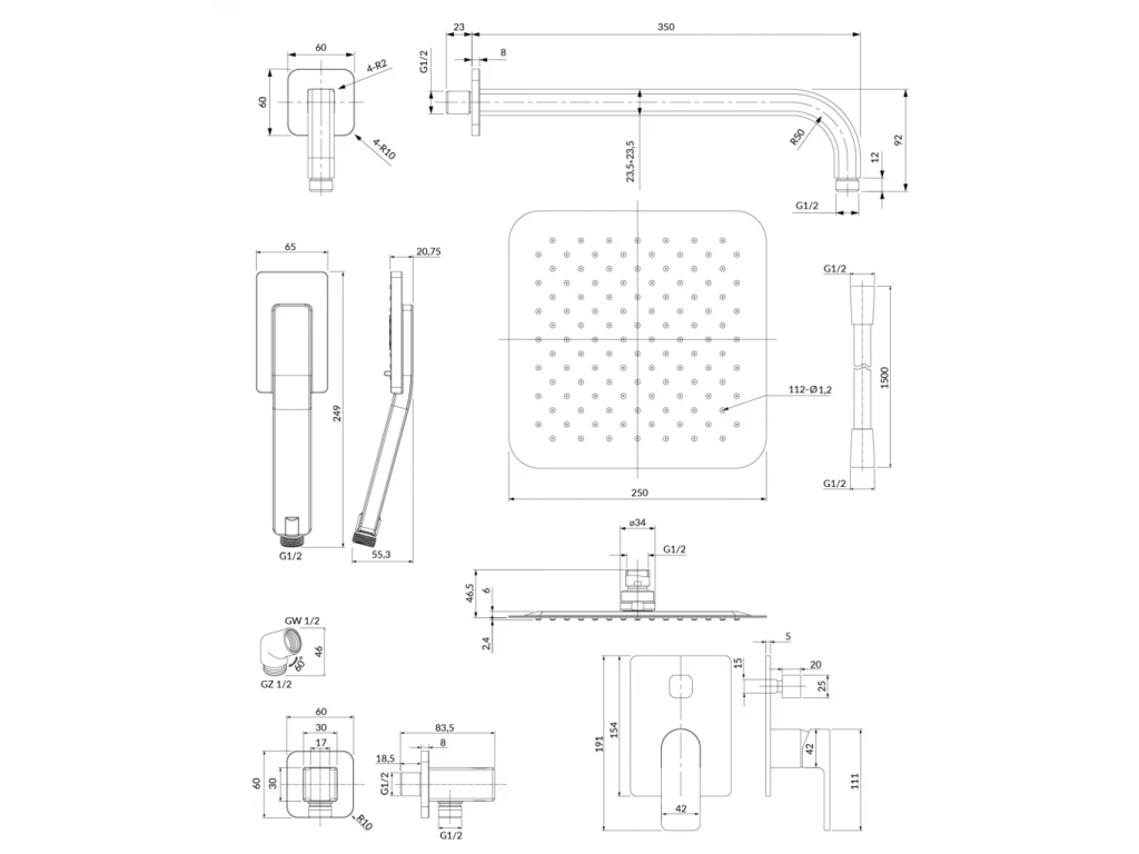- nerezová dešťová sprcha (WGU225CR), rozměr: 25 x 25 cm