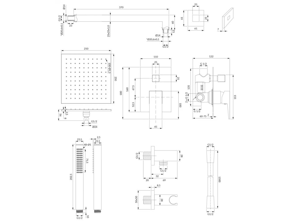 - mosazná dešťová sprcha (WG225CR), rozměr: 25 x 25 cm