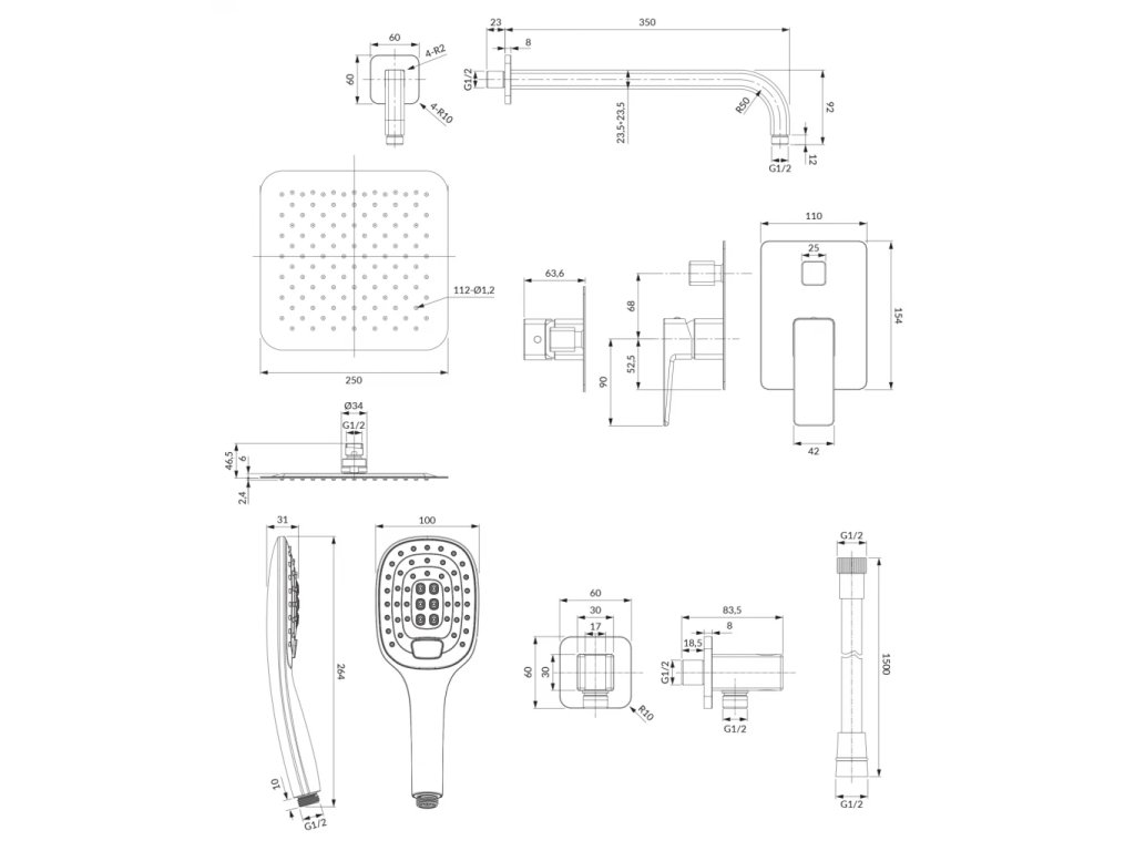 - nerezová dešťová sprcha (WGU225CR), rozměr: 25 x 25 cm