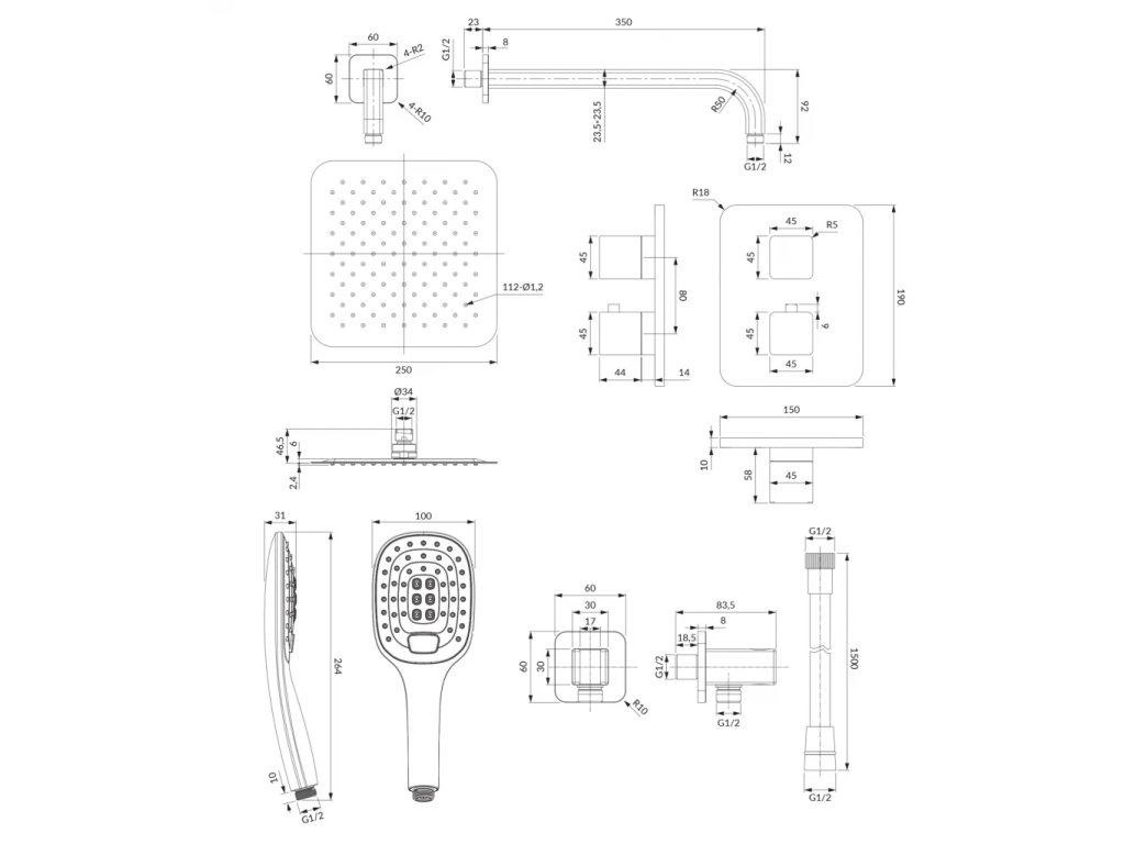 - nerezová dešťová sprcha (WGU225CR), rozměr: 25 x 25 cm