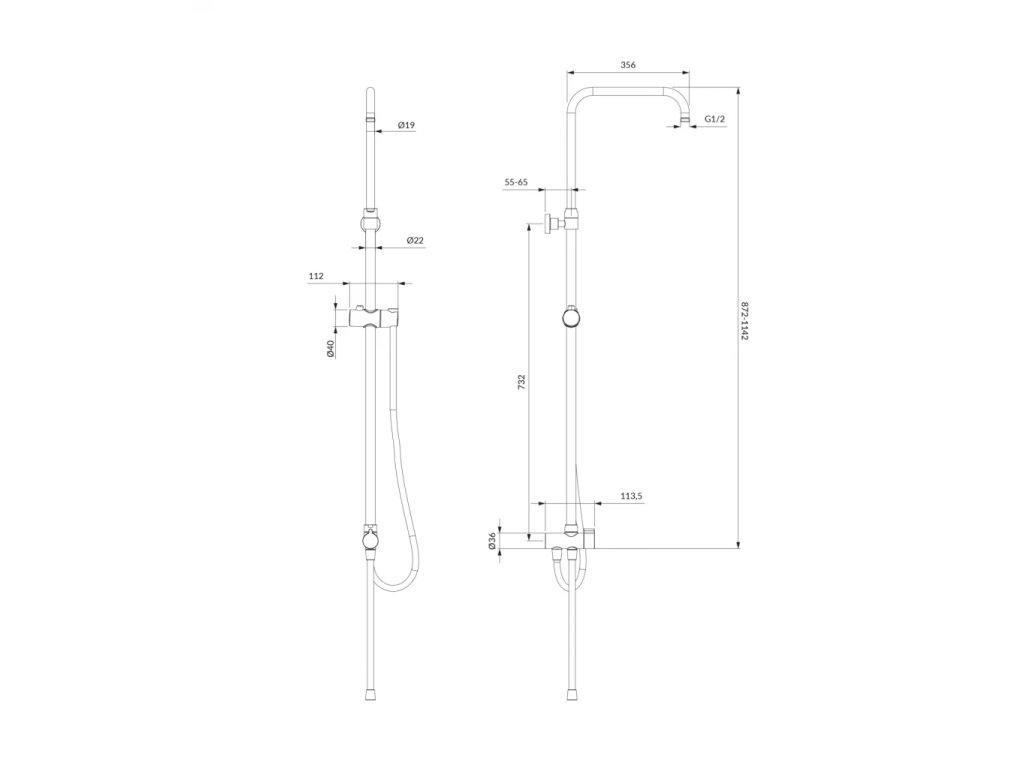 - sprchový sloup s přepínačem a ramenem dešťové sprchy