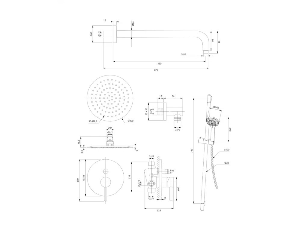 - posuvný sprchový set (YOSEMITE-SCR), s 5-funkční rukojetí
