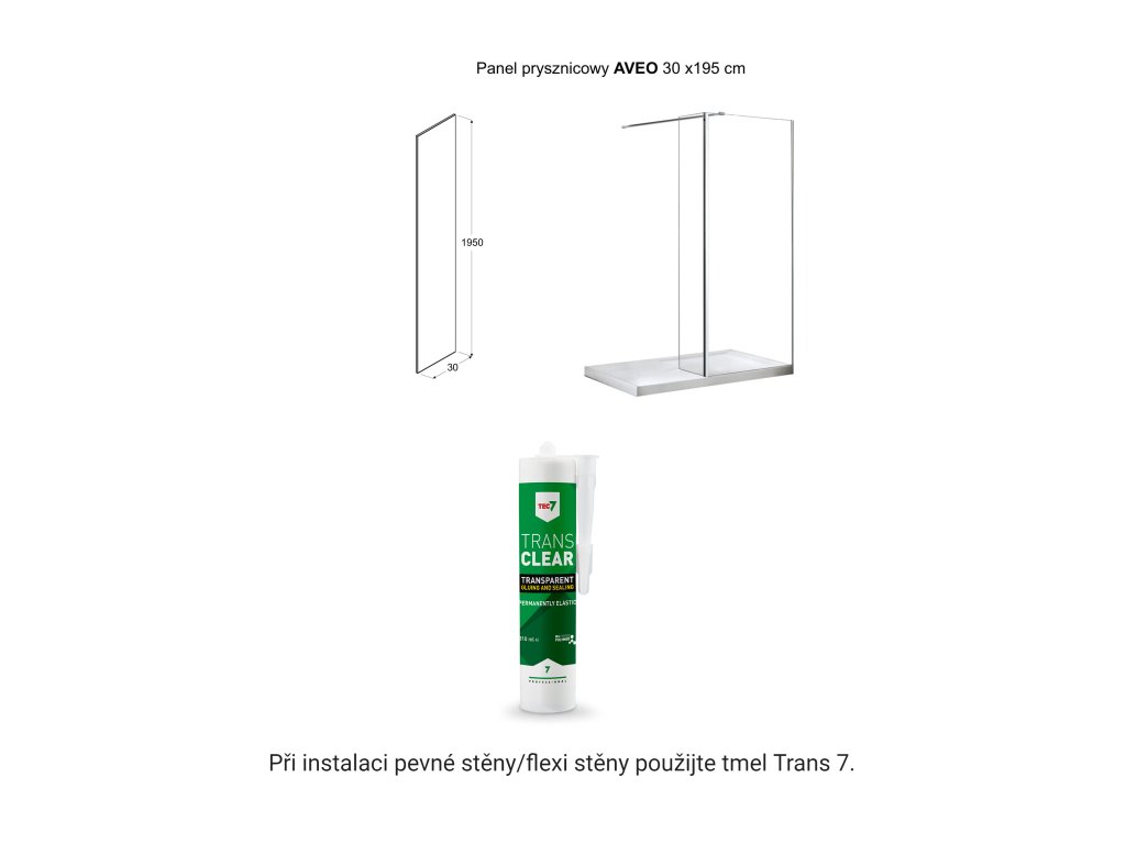 Pri inštalácii pevnej steny/flexi steny použite tmel Trans 7.