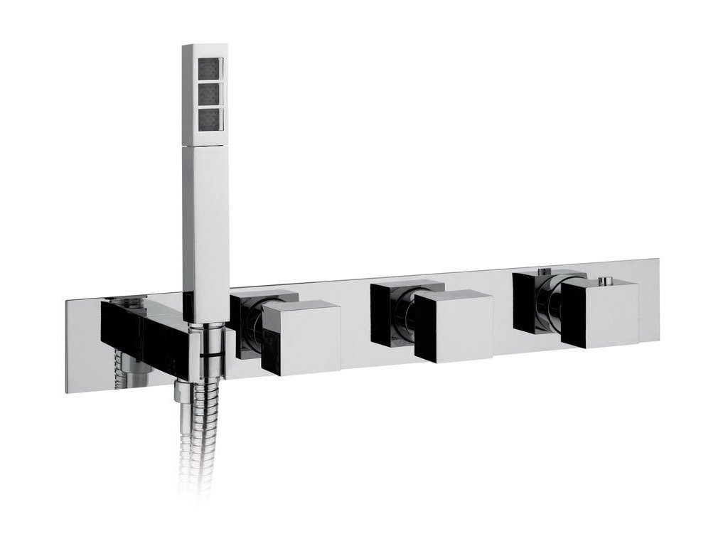 Podomietková termost. sprch./vaňová batéria s držiakom ručnej sprchy, 2 výstupy, hranatý,chróm DOPRAVA ZADARMO