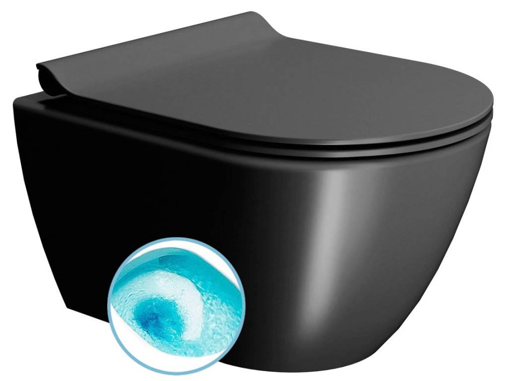 PURA závesná WC misa, Swirlflush, 36x50cm, čierna dual-mat