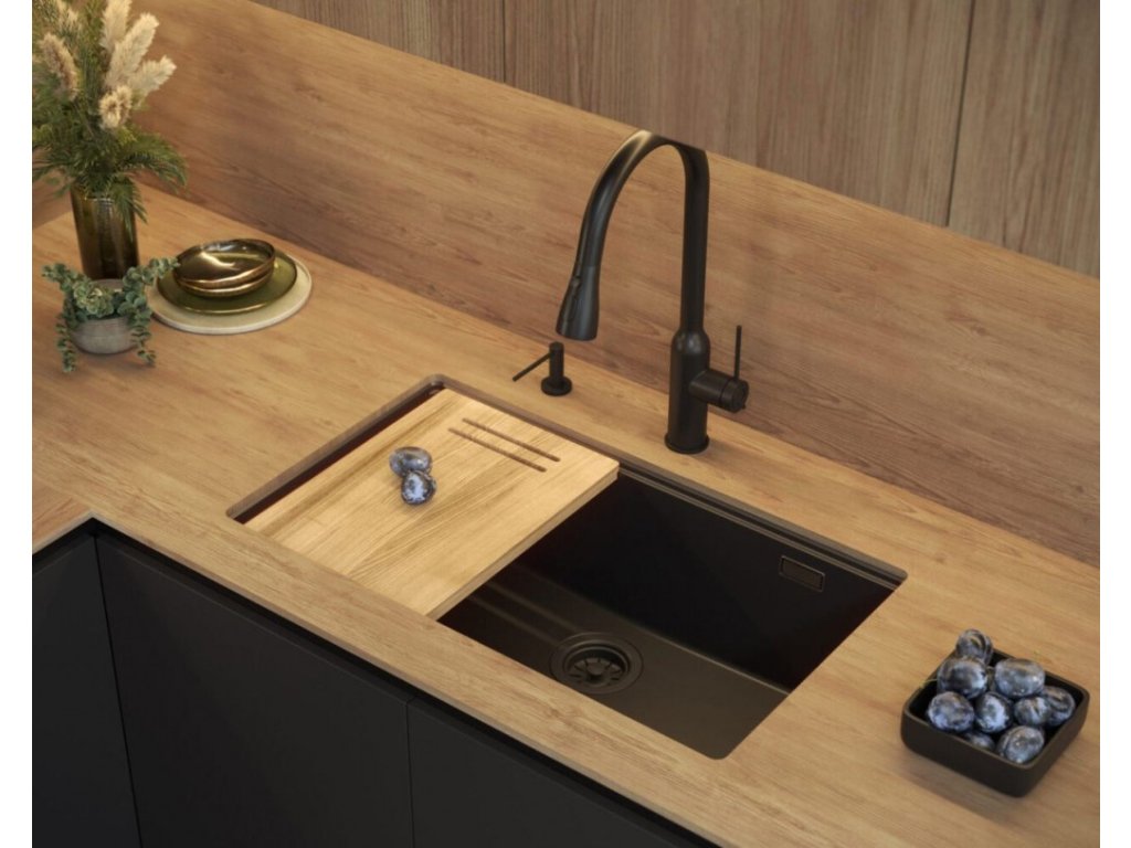 MEXEN - Leo granitový dřez 1 s odkapávačem 900x500 mm, černá / stříbrná metalíza 6501901010-73