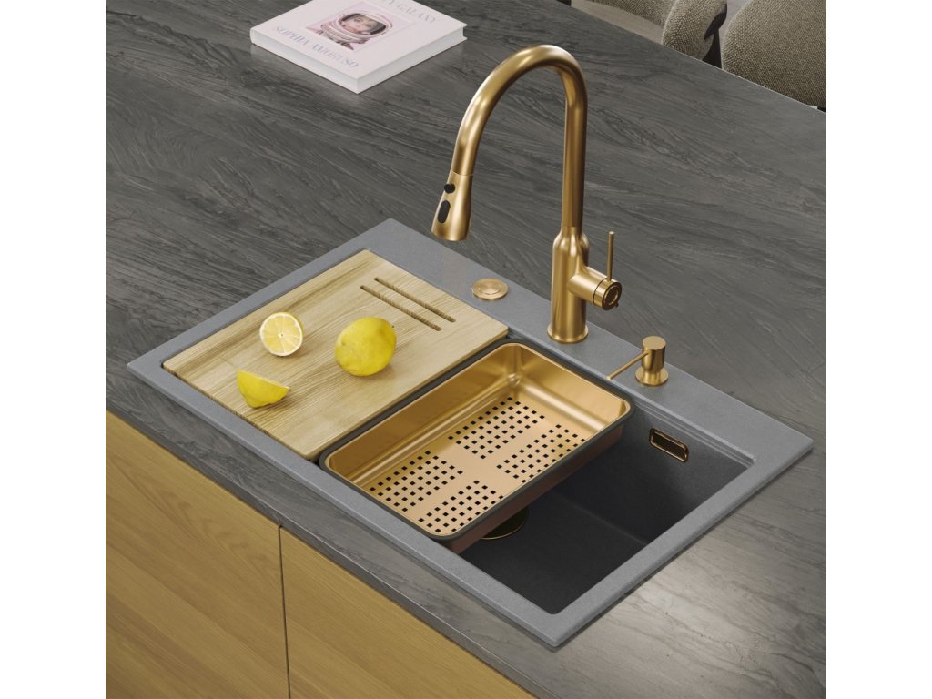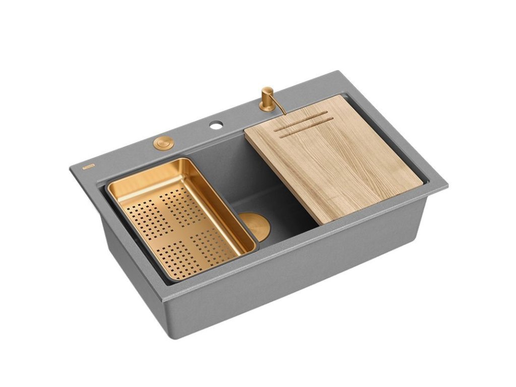 Quadron - Granitový dřez MARC 110 WORKSTATION Grey Metallic Měď HQM7650U5_PVDC1