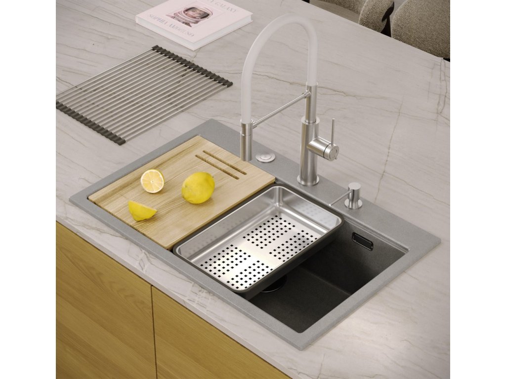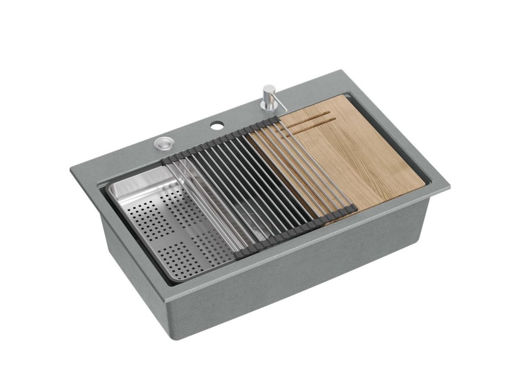 Zlewozmywak Marc 110 Workstation swoim minimalistycznym, nowoczesnym wyglądem sprawia, że wpasuje się w aranżację każdej kuchni. Głęboka i pojemna komora zapewnia duży komfort użytkowania. Zastosowany materiał, charakteryzują się wyjątkową wytrzymałością oraz odpornością na zróżnicowane temperatury i charakter wykonywanych w ich obrębie prac. Bardzo gładka powierzchnia sprzyja utrzymaniu czystości. Zlewozmywak przystosowany jest do montażu wpuszczanego. W komplecie ze zlewem jest dostępny szereg akcesoriów kuchennych – dozownik płynu, bambusowa deska do krojenia, ociekacz oraz zwijana Qmata stalowo silikonowa (nie jest dołączona do zestawu w wariantach złotym i miedzianym) , która może również służyć do odkładania mokrych produktów spożywczych lub naczyń, ale także sprawdzi się jako podstawka pod gorący garnek. Zastosowanie tych elementów, powiększa powierzchnię roboczą w kuchni i pozwala z powodzeniem wykorzystać komorę jako dodatkowe miejsce robocze, do krojenia, czy suszenia. (NO-AUTOTRANSLATE)Dodatočné parametre