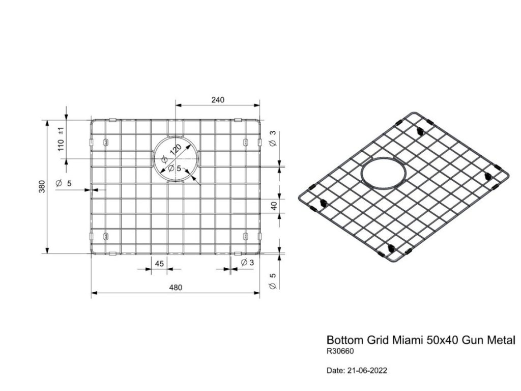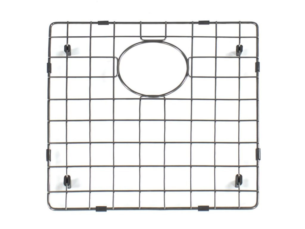 Mriežka do drezu Reginox Miami 50x40 Gun metal (R30660) . Mriežka chráni drez pred opotrebením. Pri používaní drezu nie je potrebné mriežku odstraňovať, voda krásne odteká do odpadu. Gumové nožičky a vonkajšie ohraničenie mriežky zaisťuje pevné uchytenie na dne drezu a drez chráni.