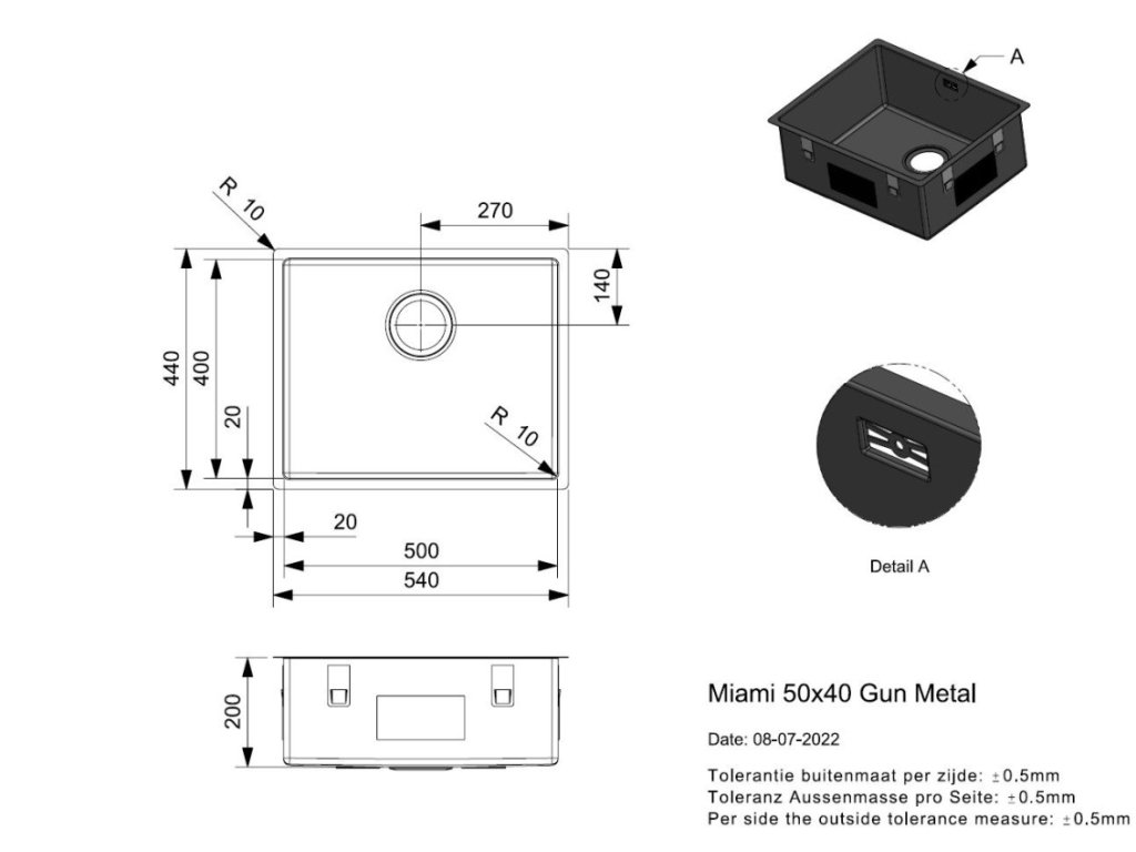 Luxusný kovový set drezu vrátane príslušenstva vyrába líder na trhu medzi drezami prestížna firma Reginox . Spoločnosť Reginox je na trhu viac ako 39 rokov, kladie dôraz na dizajn, kvalitu aj životné prostredie. Nerezový drez Miami 500 Gun metal / šedý (R30721) je súčasťou dizajnového radu farebných drezov Regi-colour , vyrobené firmou Reginox z najkvalitnejších materiálov.