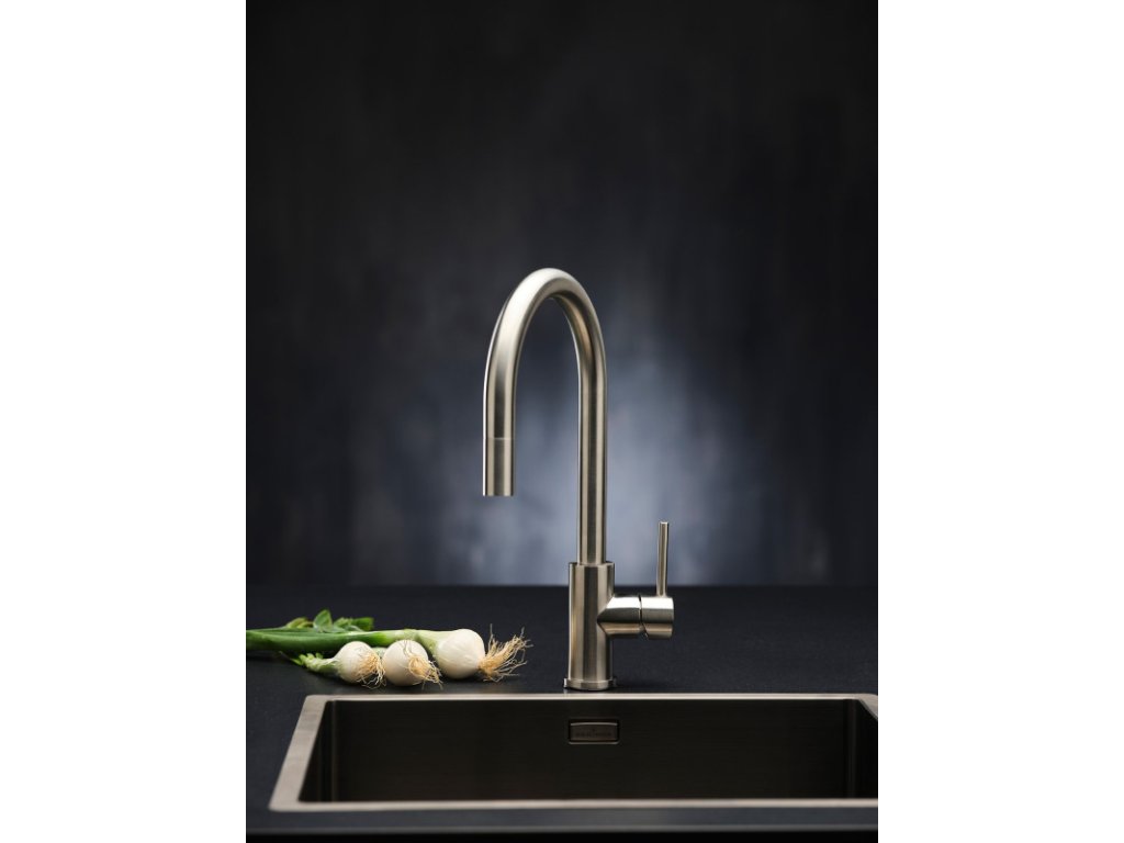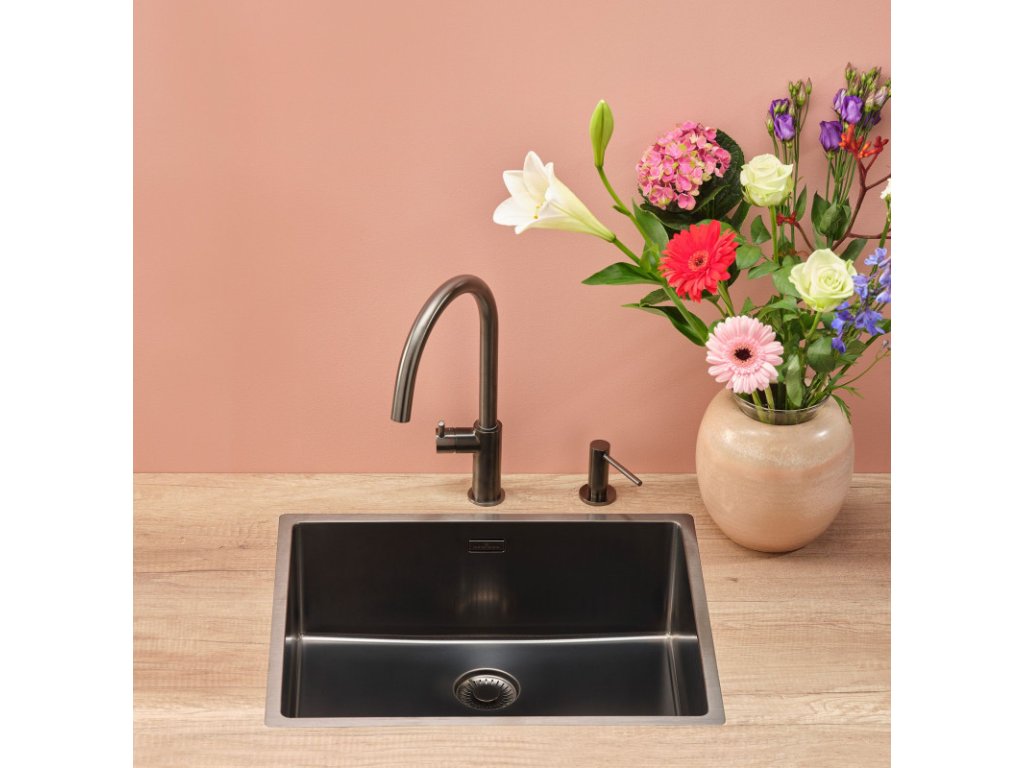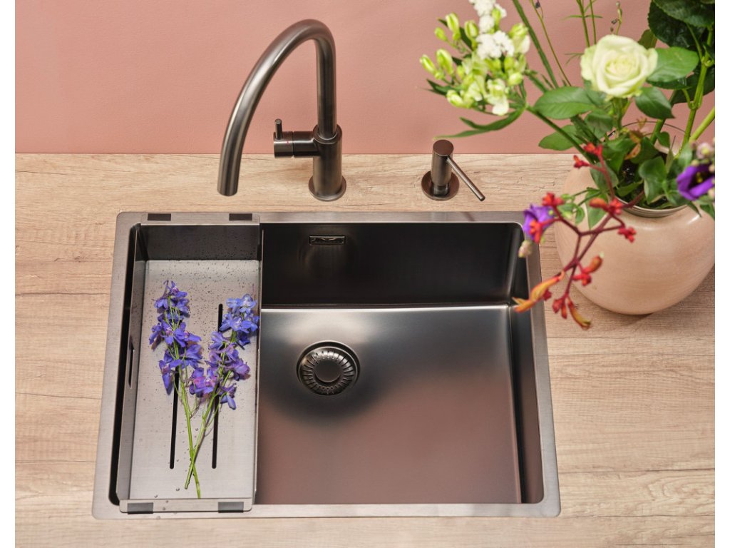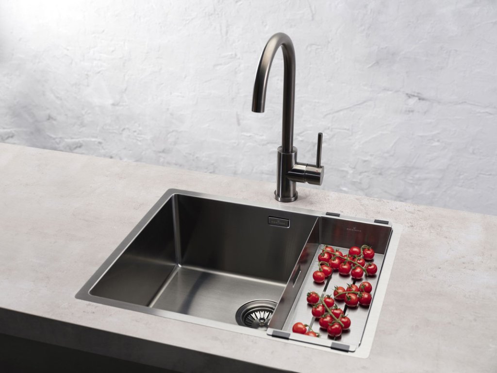 Drezová batéria Cano Gun metal (R30486) , kartáčovaný nikel. Táto kuchynská batéria dopĺňa tzv. rad štýlovej šedi, aby dokonale ladila s drezom. Ideálna kombinácia štýlu, kvality a výkonu.