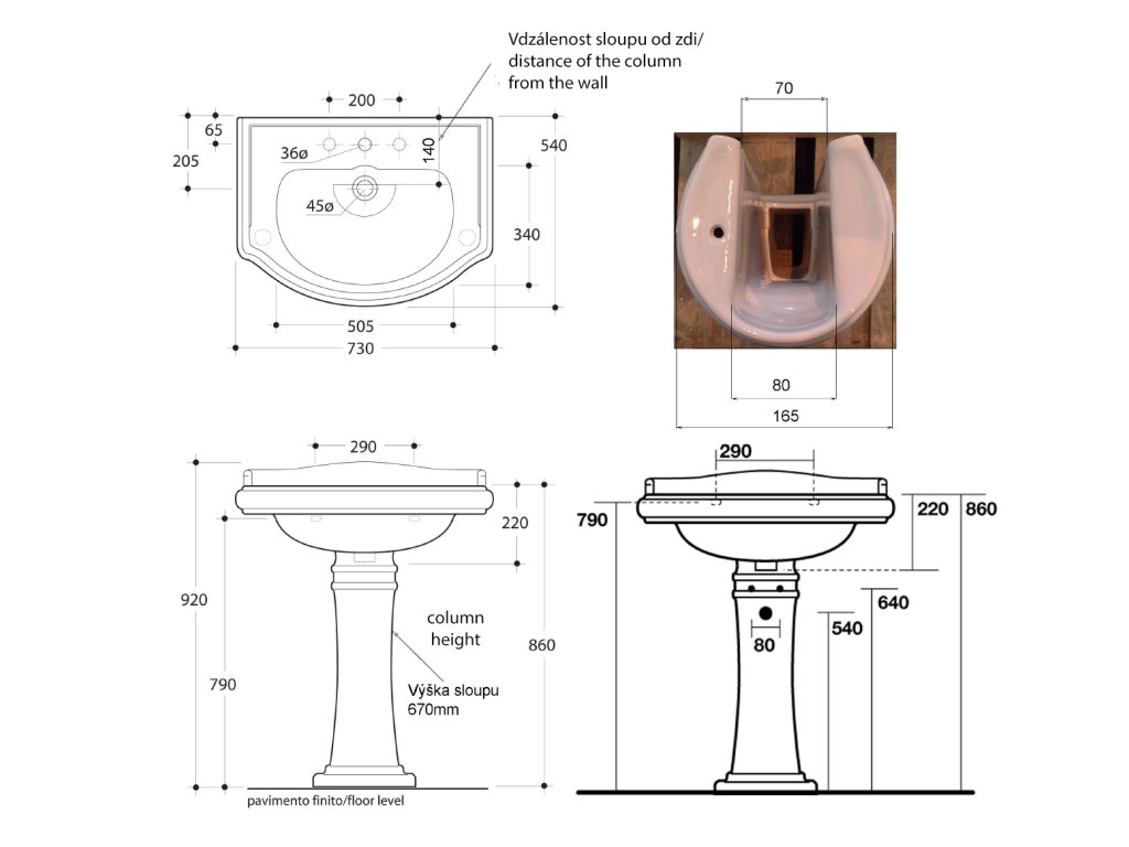 RETRO univerzálny keramický stĺp k umývadlam 56,69,73cm, biela