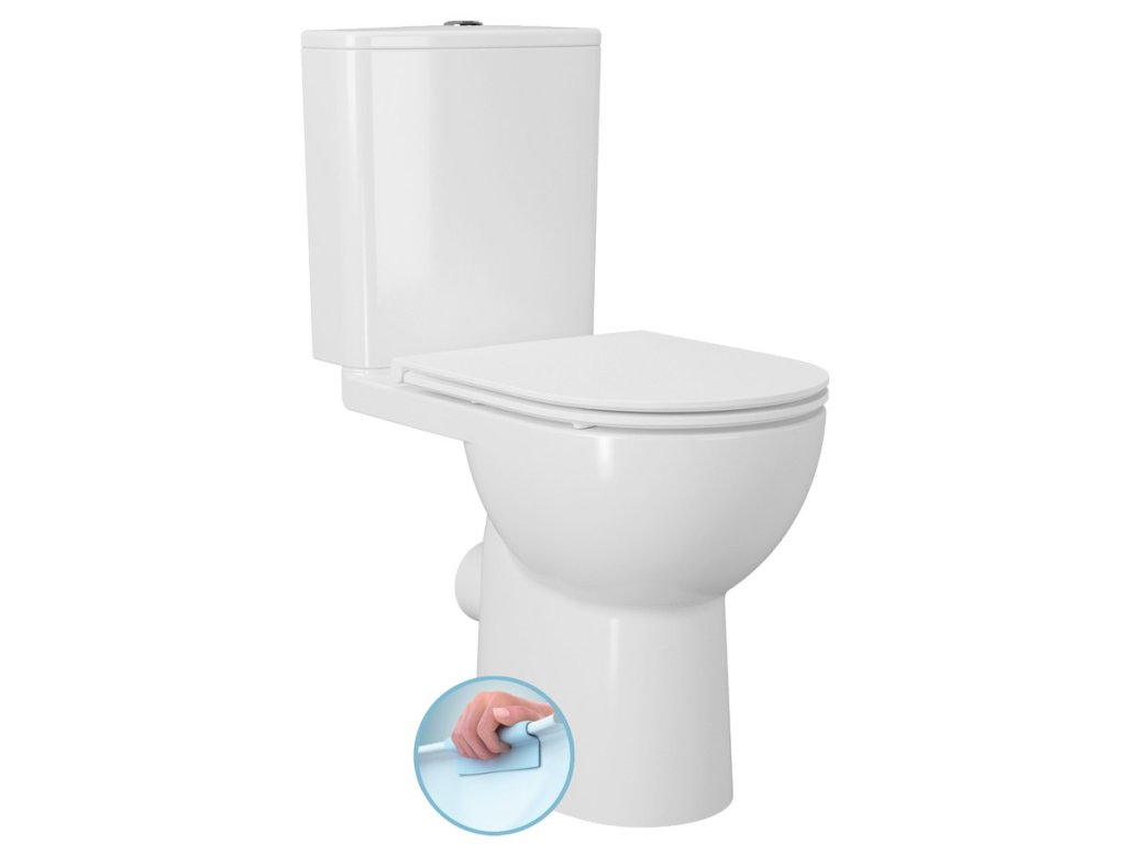 SANIVEX kombi WC, zvyšené sedenie, Rimless, spodný/zadný odpad, biela