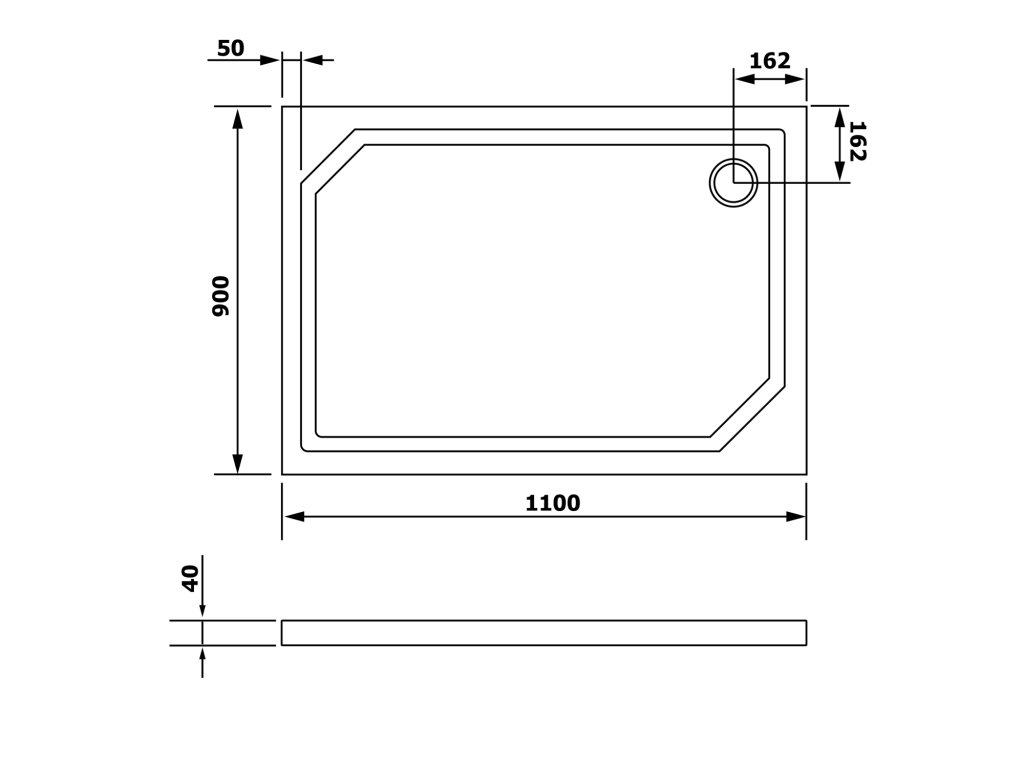 SARA sprchová vanička z liateho mramoru, obdĺžnik 110x90cm, hladká