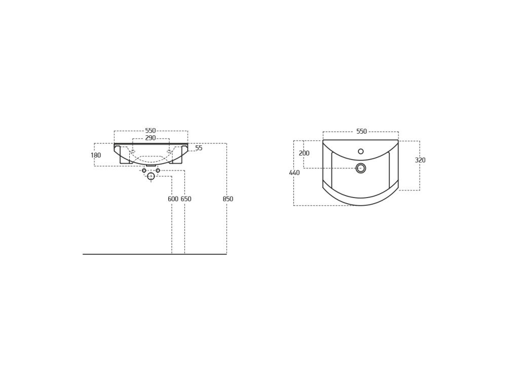 - keramické umývadlo: 55 × 50 × 17 cm