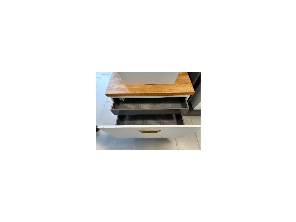 Skrinka je celolakovaná a má výškovo nastaviteľné závesy na stenu . Obsahuje celkom dva šuplíky (z toho jeden je skrytý), ktoré majú dno opatrené protišmykovým povrchom . Skrinka je vrátane špeciálneho nábytkového sifónu . Pokiaľ zakúpite dve skrinky (pravý a ľavý variant) rovnakého rozmeru, je možné ich spojiť jednou hornou doskou v celku. Ľavé a pravé prevedenie sa určuje podľa smeru frézovania na čelnej hrane šuplíka.