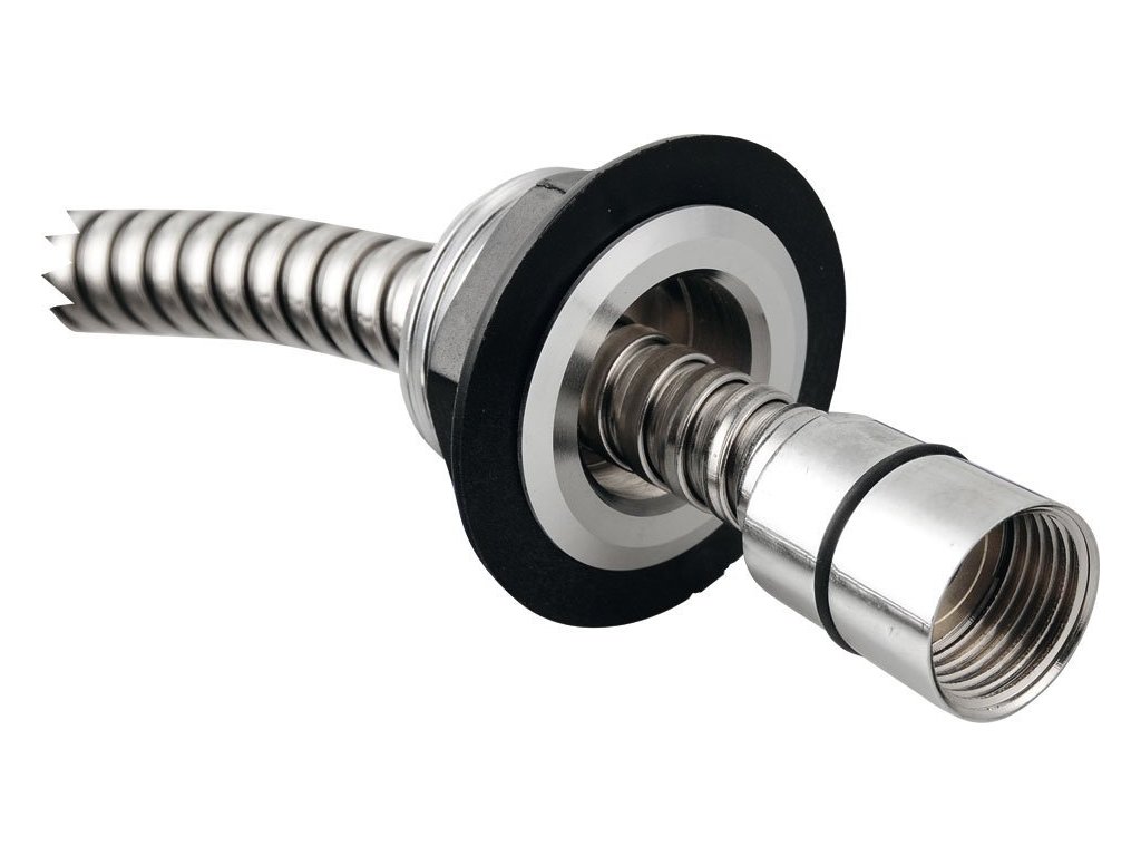 Sprchová priechodka na okraj vane vrátane hadice F1/2"-M3/8", guľatá, chróm
