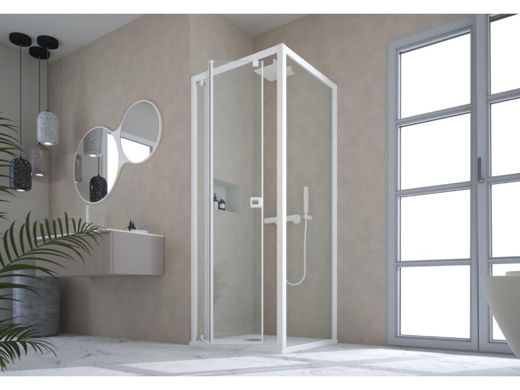 Zalamovacie sklenené dvere DECO N2S ponúka jednoduché a pritom praktické riešenie bez použitia pohyblivých - posuvných dverí, ale s maximálnym vstupom. Vytvára veľmi luxusný dojem, ktorý je podporený výrazným madlom. Dvere sa dodávajú v ľavom alebo pravom prevedení. Bezpečnostné sklo je opatrené povrchovou úpravou AQUA CLEAN pre jednoduchšiu údržbu. Dá sa osadiť ako na sprchové vaničky , tak aj priamo na podlahu . Zásteny sú vyrobené z 6 mm bezpečnostného skla.