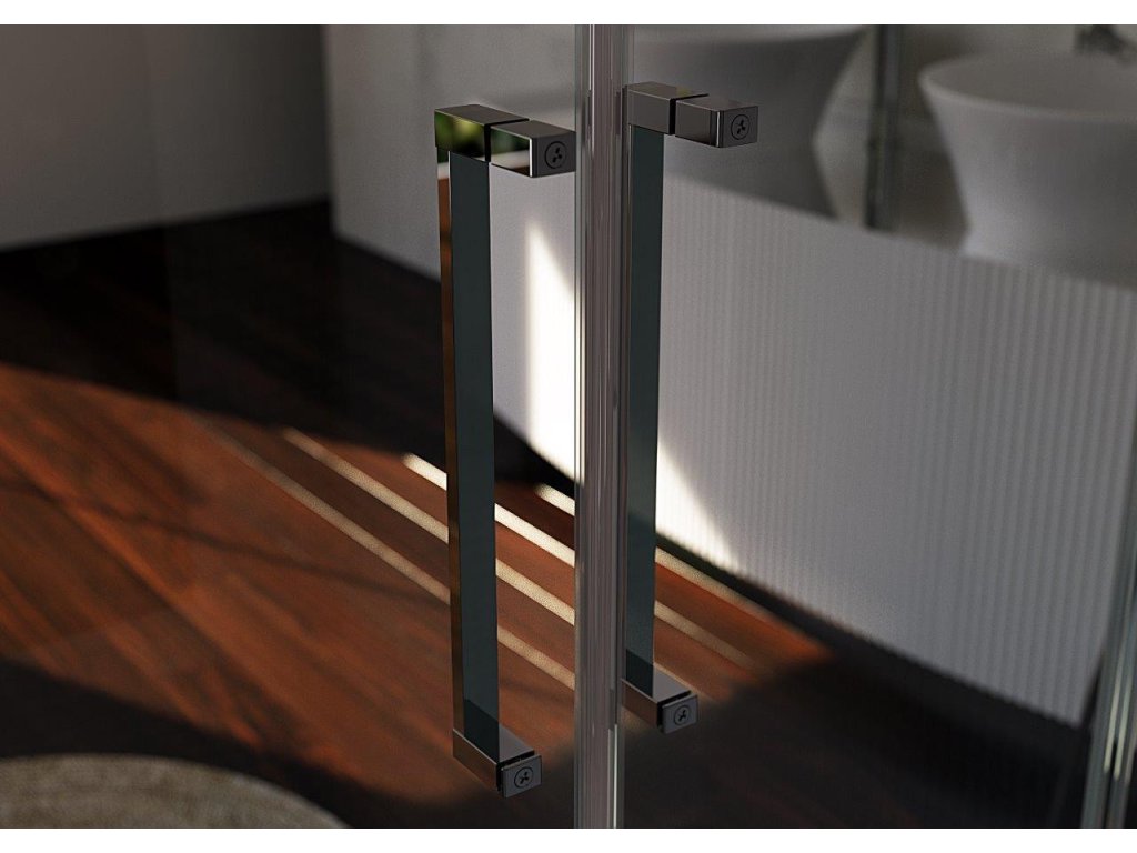 Bezbariérové posuvné štvordielne sklenené steny URBAN ESSENCE N2FS riešia atypické vstupy v priestranných kúpeľniach. Vytvára veľmi luxusný dojem, ktorý je podporený výrazným chrómovým madlom. Je možné dokúpiť jednu alebo dve bočné pevné steny ESSENCE F1AB, pomocou ktorých poskladáte praktický sprchovací kút. Pevná stena ESSENCE F1 je dodávaná v univerzálnom ľavom/pravom prevedení.