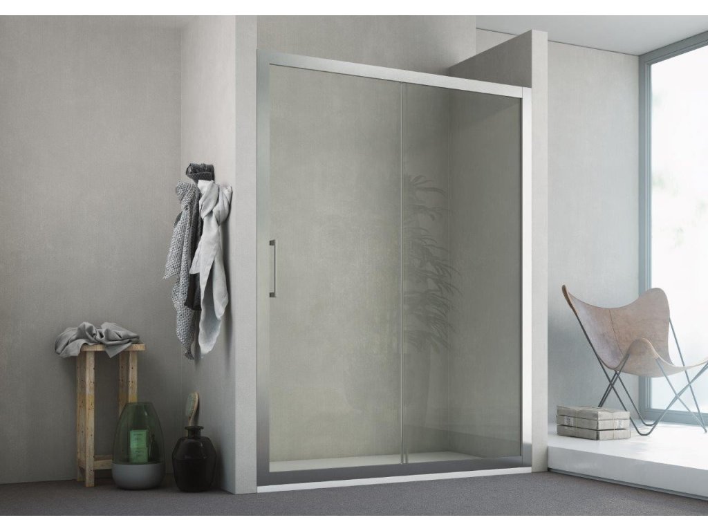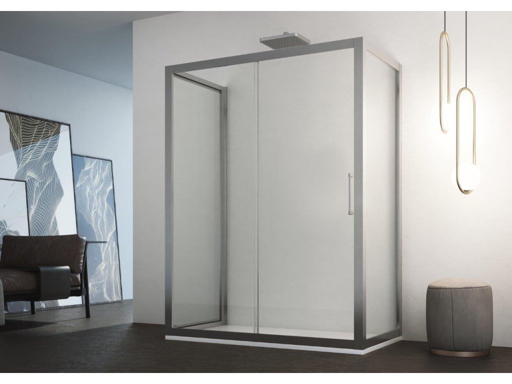 Posuvné sklenené steny riešia atypické vstupy v priestranných kúpeľniach. Vytvára veľmi luxusný dojem, ktorý je podporený výrazným chrómovým madlom. Dodáva sa v univerzálnom prevedení.