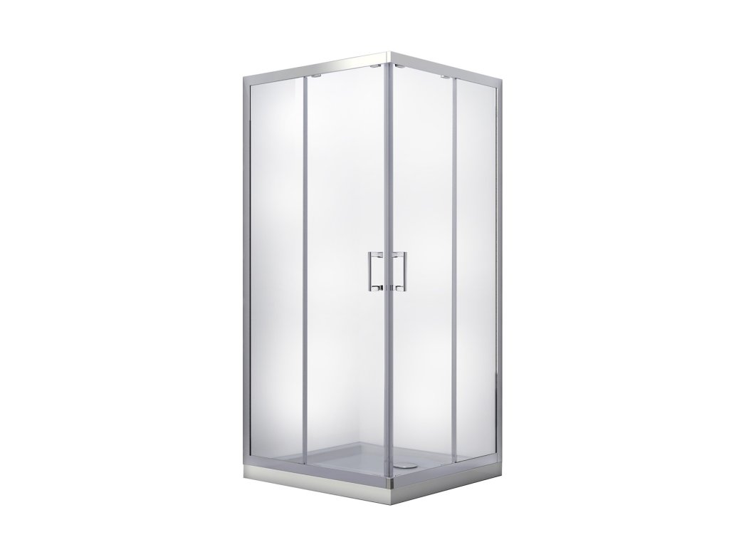 Štvorcový sprchovací kút MODERN 185 + vanička z liateho mramoru, 90 cm, 90 cm, Frost bezpečnostné sklo - 6 mm, Vrátane vaničky, Chróm/Leštený hliník (ALU)