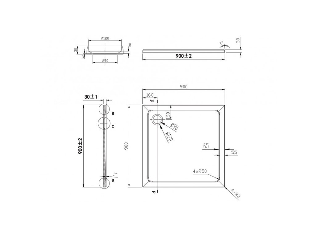 - Modern 90x90x185 cm: 88,5 - 90,5 cm, šírka vstupu: max. 52 cm