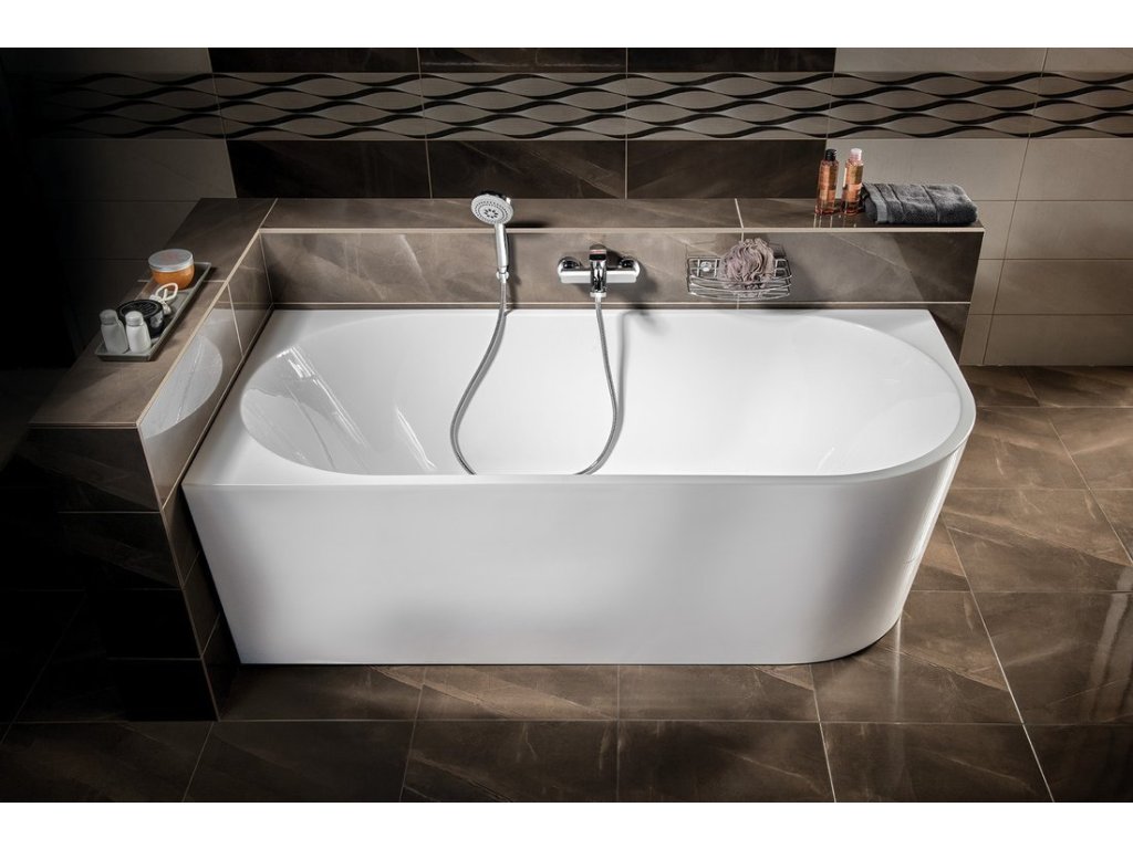 Samostatne stojaca vaňa TIBERA sa neobmurováva ani neobkladá. Svojím dizajnom je určená na inštaláciu do rohu, čím sa stáva zaujímavým variantom náhrady za klasickú rohovú vaňu. Pohľadová je aj zadná strana, takže elegantne bude pôsobiť aj v priestore. Za pozornosť stojí riešenie prepadu v tvare obdĺžnikovej štrbiny s nerezovou krytkou.