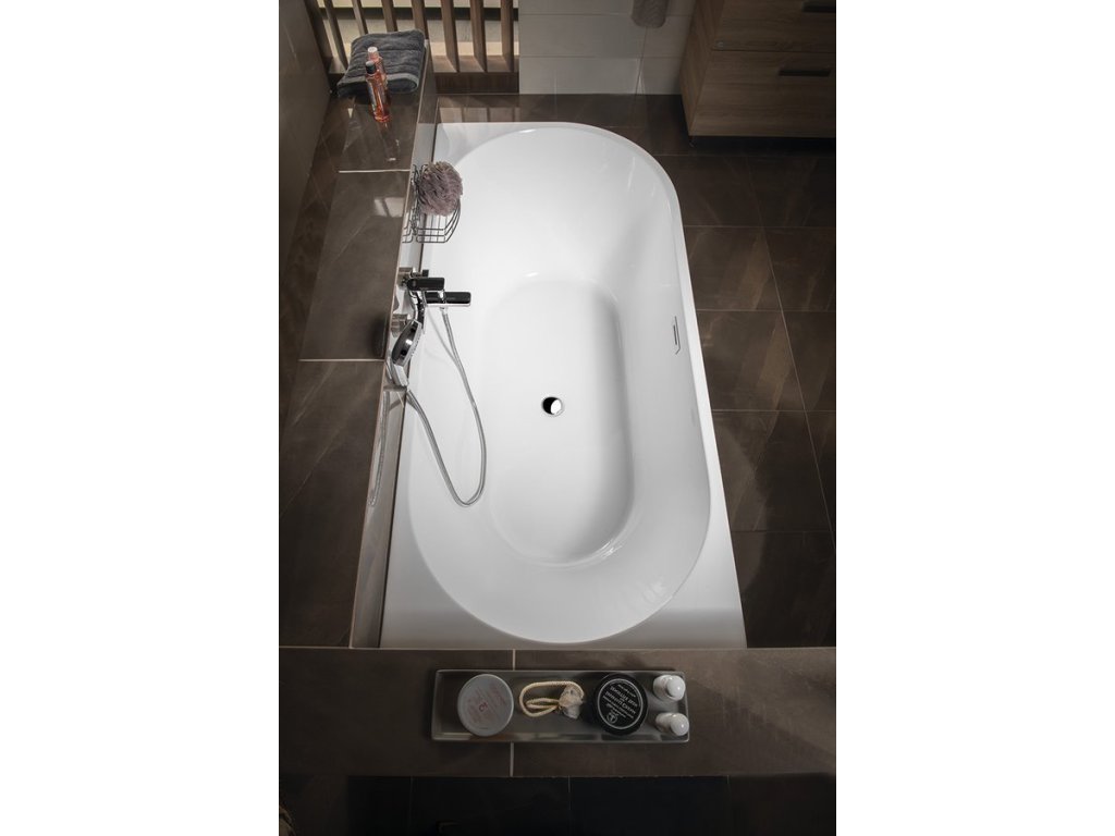 Súčasťou vane je prepadová súprava, výpusť s click-clack zátkou a sifón