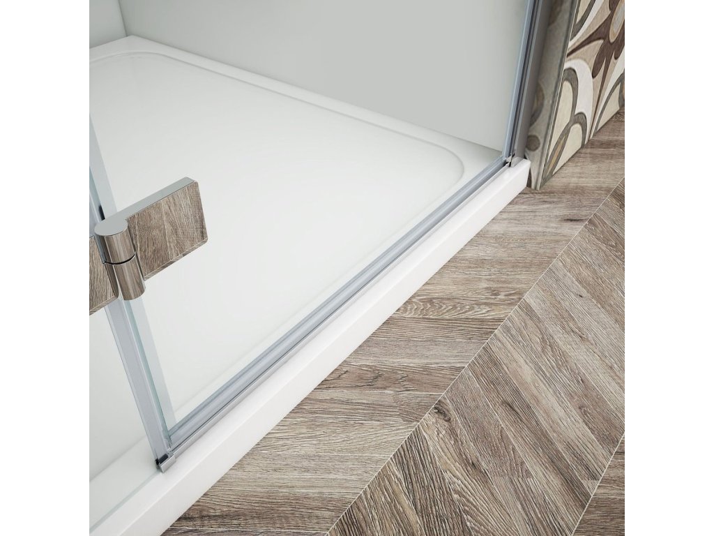 Ochranu proti pretečeniu vody u bezrámových zásten zaisťuje nízka prietoková lišta, ktorá dotvára čistý vzhľad zásteny. Bezrámové zásteny tak pôsobia sviežim elegantným dojmom.