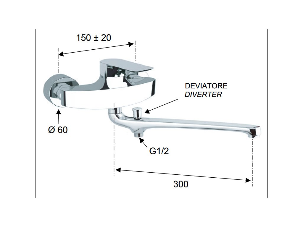- Umývadlová/vaňová batéria nástenná s prepínačom