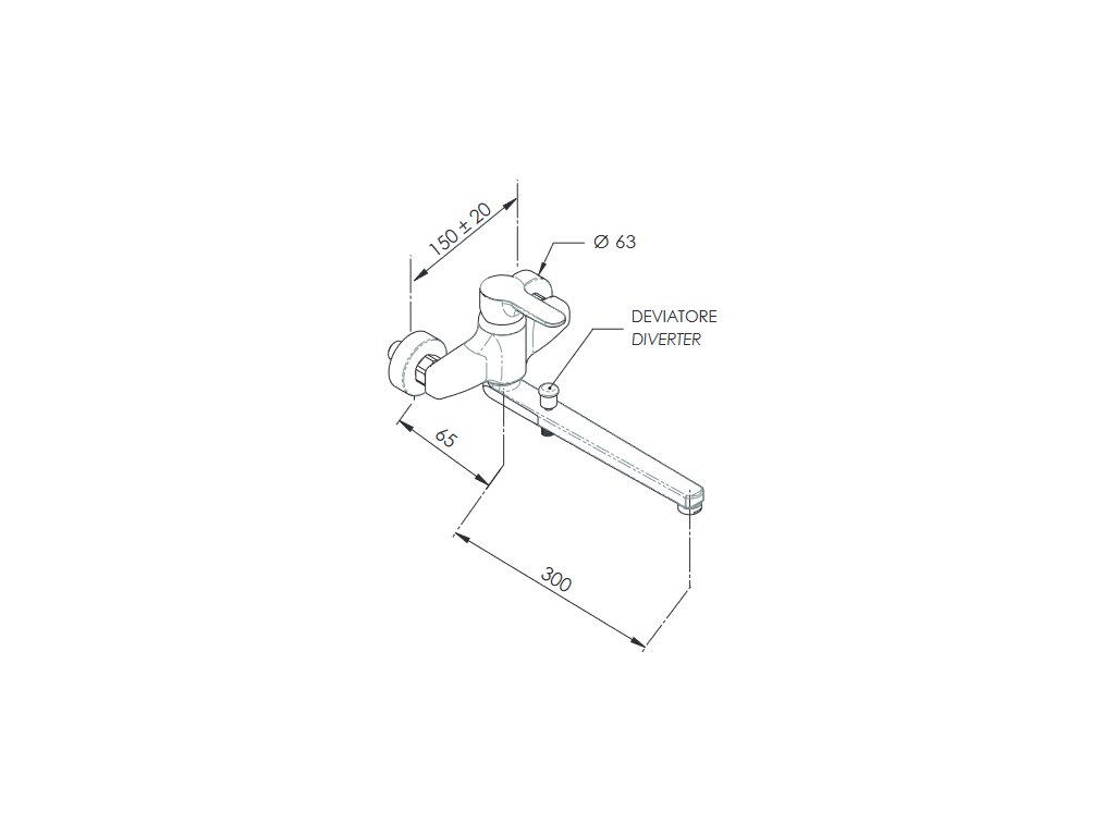 - Umývadlová/vaňová batéria nástenná s prepínačom