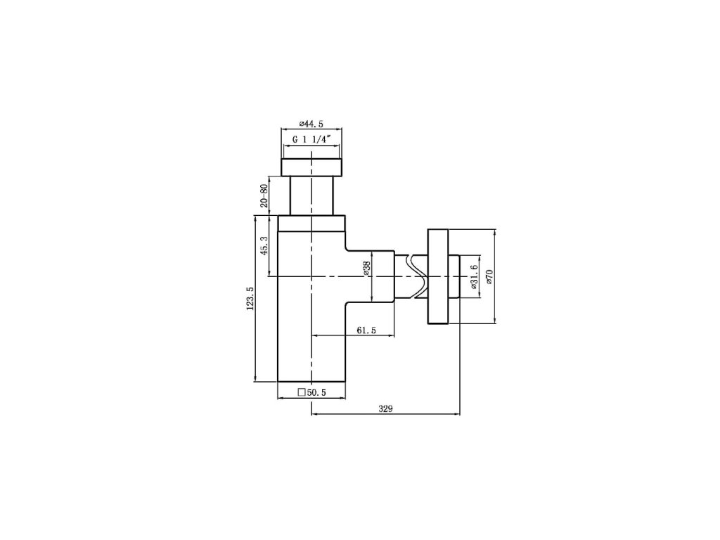 Umývadlový sifón 5/4", odpad 32mm, hranatý, chróm