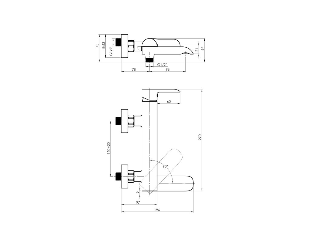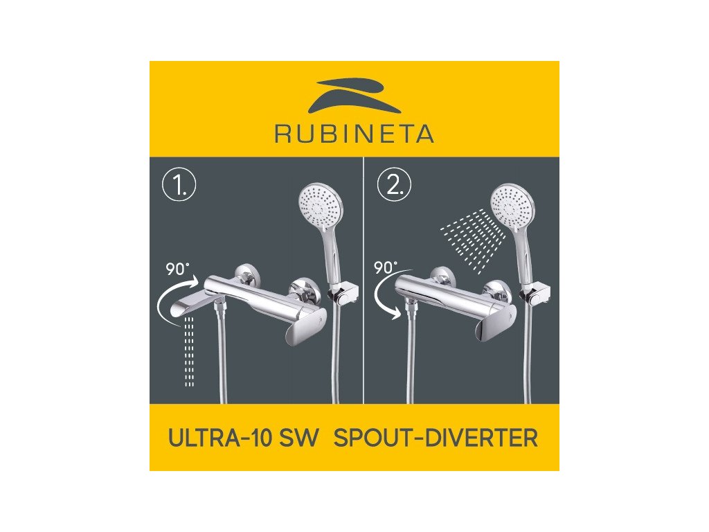 - Vaňová nástenná so sklopným výtokovým ramienkom , ktorý zároveň slúži ako prepínač