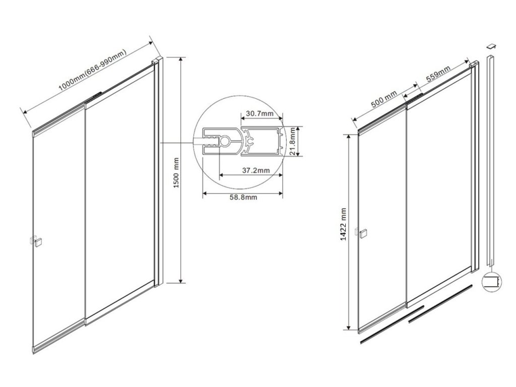 - Rozmery: 100 × 150 cm, montážny rozmer 66,6 - 99 cm